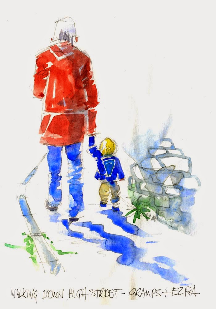 There's going to be a gap in our Ezra's illustrated diary for the end of April to May so I thought I'd put in some explanatory sketches so he can see where we were at that time. This one is the initial pen sketch of Capelo Corpo Santo in Funchal Old Town Madeira - I'll paint it soon.